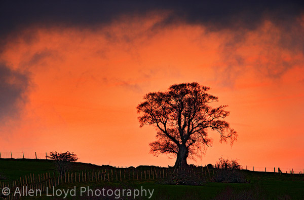 Tree at dawn on Mynydd Illtydd Common