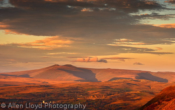 Brecon Beacons viewed from Rhigos Mountain at sunset