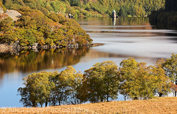 Graig Goch Reservoir and dames in Autumn shades, Elan Valley