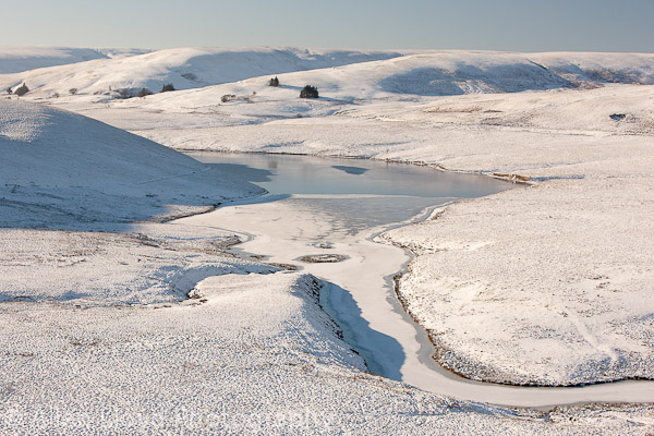 Snow surrounding the Craig Goch Reservoir in the Elan Valley