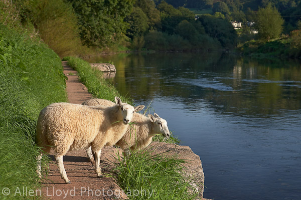 Sheep grazing at the side of the River Wye at Redbrook