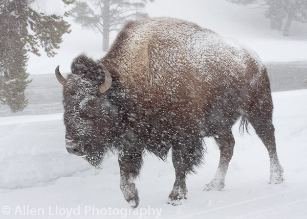 Bison in snow storm