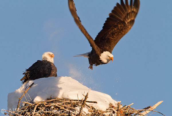 Bald eagle leaving nest