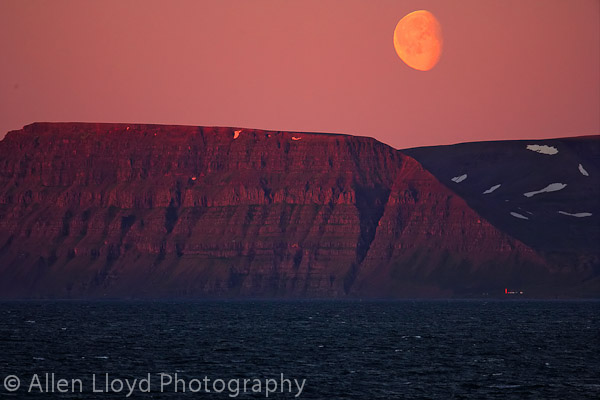 Moon at sunset, over Northern Iceland