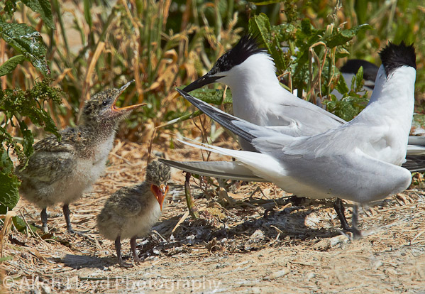 Sandwich tern with chicks