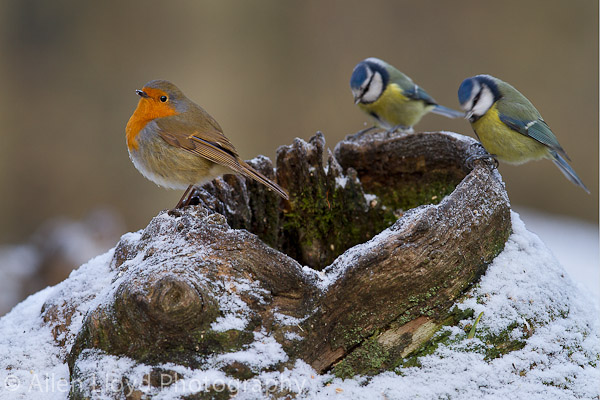 Robin with Blue Tits
