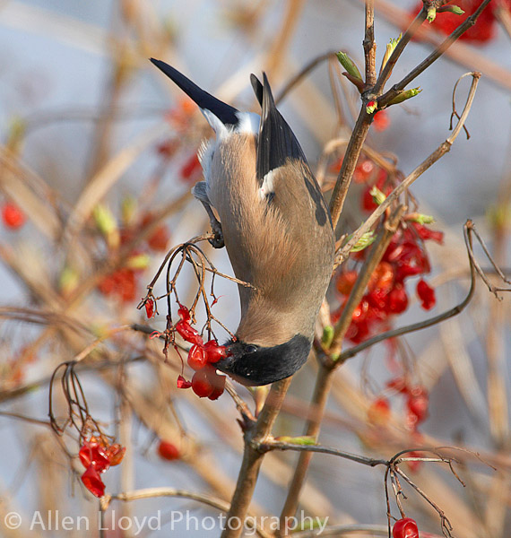 Bullfinch feeding on berries