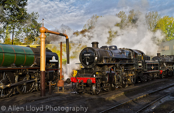 43106 ("The Flying Pig" and 60163 "Tornado" at Bridgenorth shed, during the SVR Autumn Steam Gala