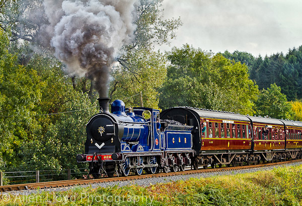 Caledonian Railway loco 828, hauls a passenger train, at Hay Bridge, during the SVR Autumn Steam Gala